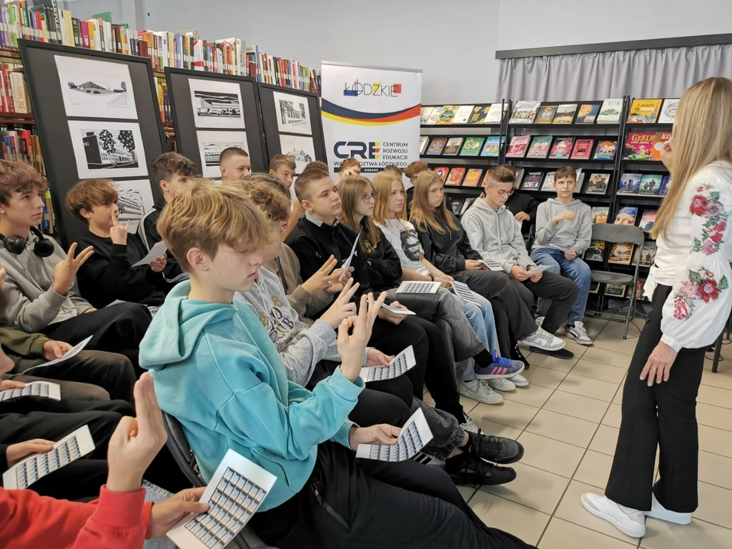 Podczas zajęć młodzież poznała alfabet palcowy i kilka podstawowych znaków Polskiego Języka Migowego (PJM), który służy do komunikowania się osób niesłyszących jak i słyszących. Naszym uczniom udało się zamigać w PJM „ Dzień dobry, lubię bibliotekę”. Dziękujemy bibliotece pedagogicznej za zaproszenie, życząc Wszystkim Osobom Głuchym z okazji ich święta, które miało miejsce w niedzielę 29 września, powodzenia w realizacji swoich celów.