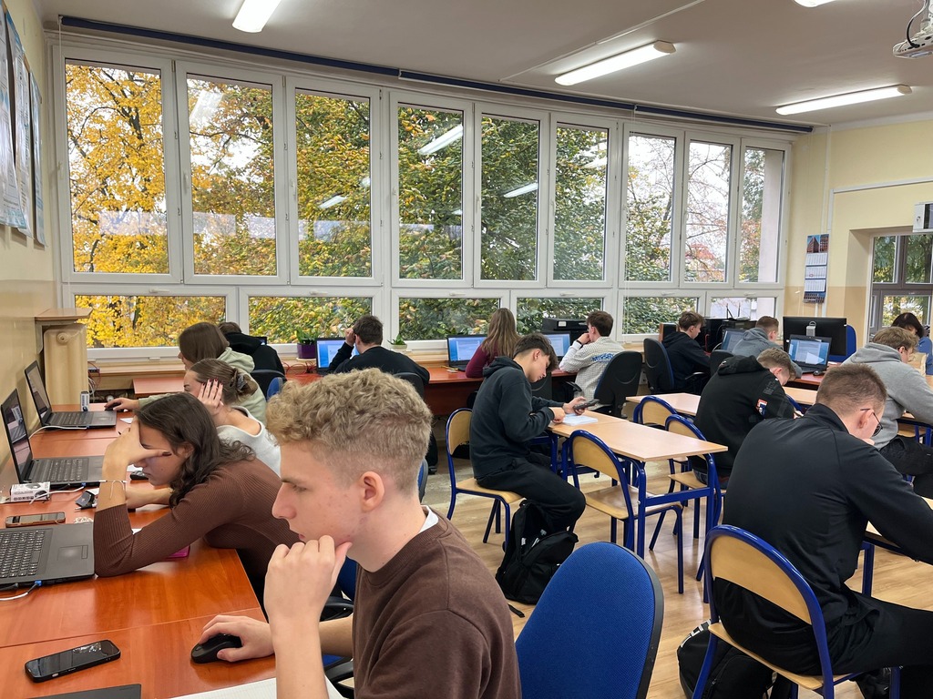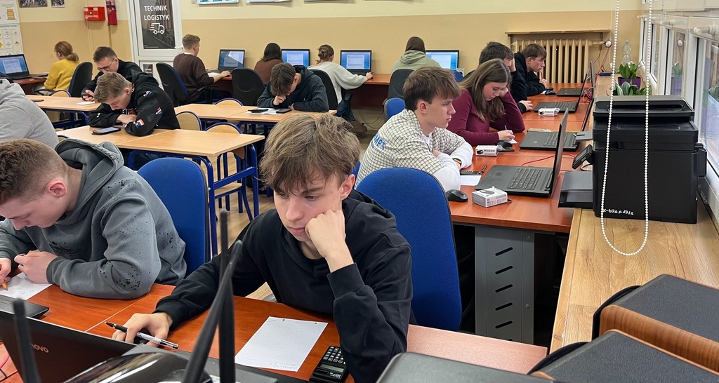 Dziś 24 uczniów z klas 4 i 5 Technikum Logistycznego wzięło udział w pierwszym etapie Ogólnopolskiej Olimpiady Logistycznej, organizowanej przez Wyższą Szkołę Logistyki w Poznaniu. Uczestnicy stanęli przed wyzwaniami testującymi ich znajomość zagadnień logistycznych, transportowych i organizacyjnych.