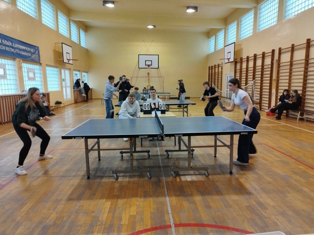 Mieliśmy wewnątrzszkolne rozgrywki w tenisie stołowym dziewcząt i chłopców. Listy były pełne, a zainteresowani od samego rana najpierw się rozgrzewali, żeby potem w zdrowej rywalizacji sportowej, pokazać swój kunszt, tajemne chwyty i triki, dzięki którym pięli się w górę po laury. Mieliśmy okazję oglądać mecze na wysokim poziomie i było to bardzo przyjemne doświadczenie