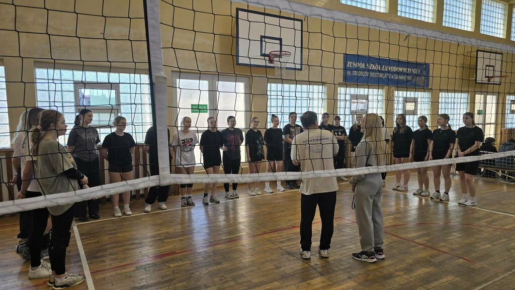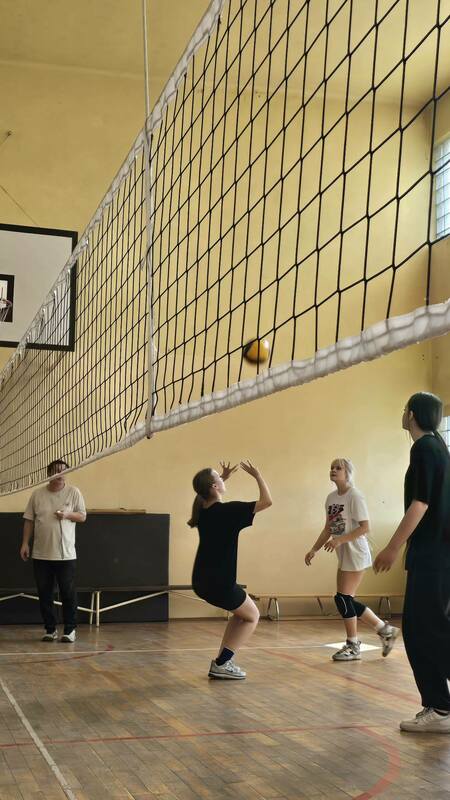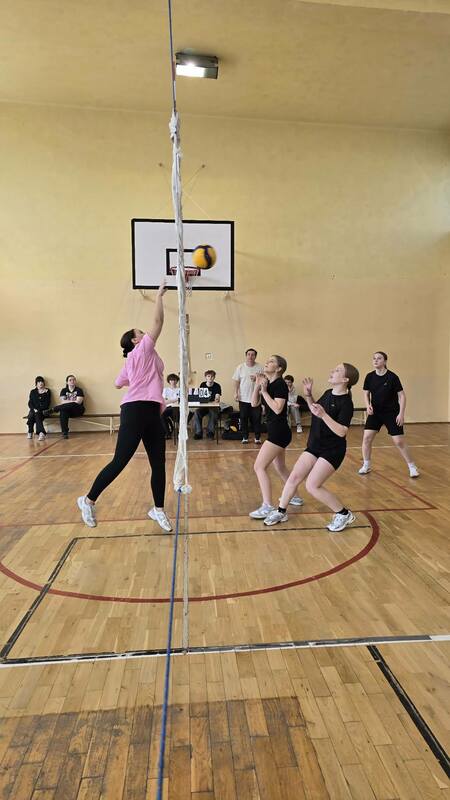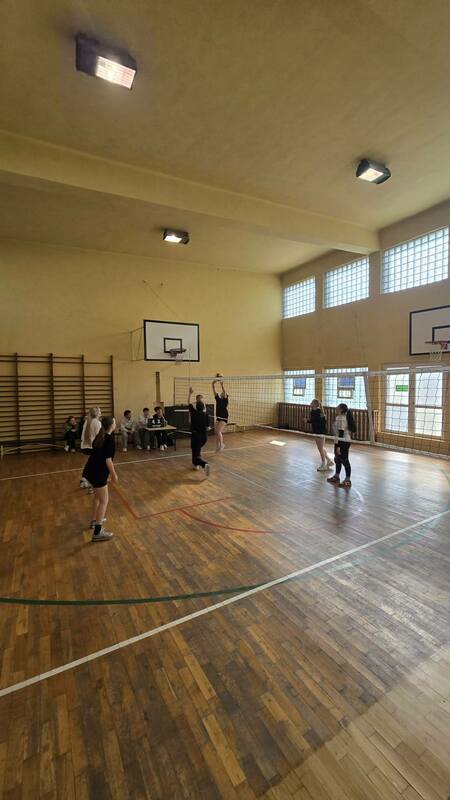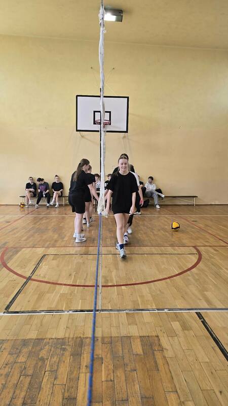 Szkolne zawody w piłce siatkowej dziewcząt.