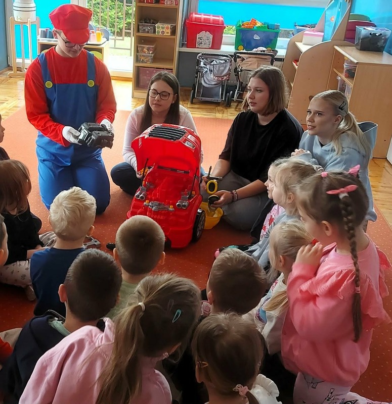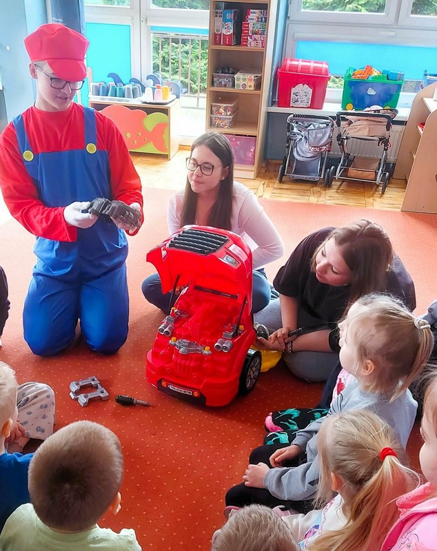 Uczniowie Zespołu Szkół Zawodowych nr 1 w Zduńskiej Woli odwiedzili grupę 5-latków z Publicznego Przedszkola nr 4, aby w ciekawy i przystępny sposób przybliżyć im, na czym polega praca mechanika samochodowego.