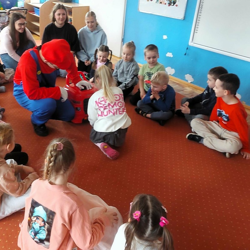 Na zakończenie tego wyjątkowego spotkania Super Mario wręczył dzieciom upominki, dziękując za wspólną naukę i zabawę. Ta niezwykła wizyta oraz zdobyta wiedza na długo pozostaną w pamięci przedszkolaków.