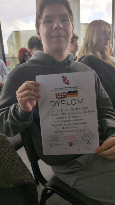 Wiktor Nowacki z klasy 1w zdobył I miejsce w kategorii Szkoła Branżowa I stopnia - język angielski!![]()