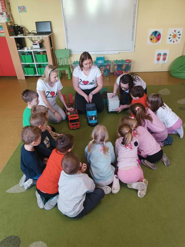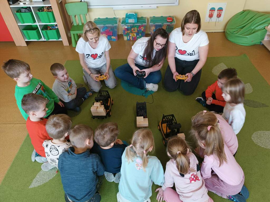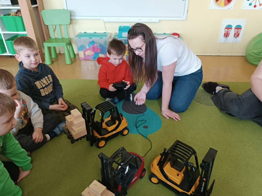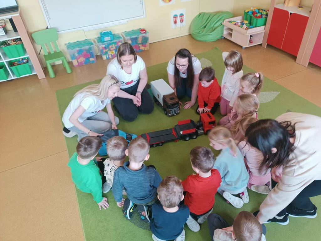 Uczennice w ciekawy i przystępny sposób wyjaśniły dzieciom, na czym polega praca logistyka oraz jakie zadania są z nią związane. Każde dziecko miało możliwość założenia kasku, okularów ochronnych oraz kamizelki odblaskowej, dzięki czemu mogło poczuć się jak prawdziwy pracownik magazynu. Uczennice zaprezentowały dzieciom samochody transportowe oraz zdalnie sterowane wózki widłowe. Przedszkolaki, przy niewielkiej pomocy, mogły samodzielnie załadować wózki i przewieźć ładunek w wyznaczone miejsce.