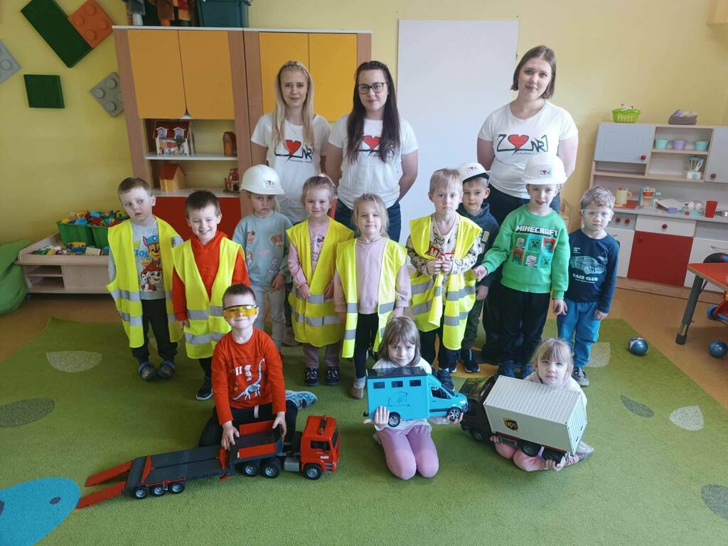 Na zakończenie odbyły się prawdziwe zawody logistyczne. Każda grupa miała za zadanie przetransportować ładunek z magazynu na wyznaczone miejsce. Po wspaniałej i pełnej radości zabawie każde dziecko otrzymało mały upominek za wspólną pracę i zaangażowanie.