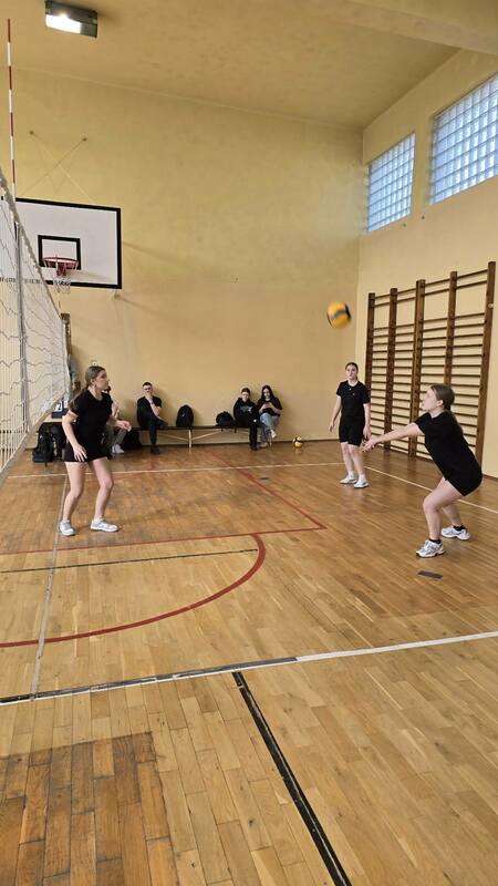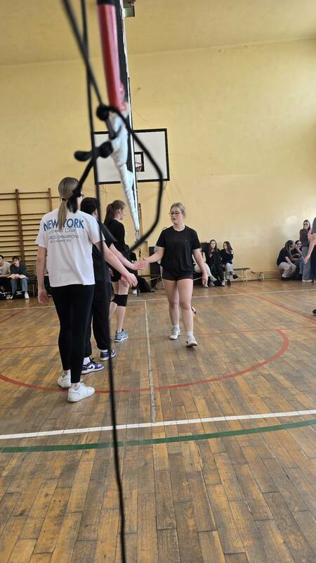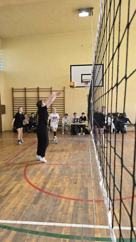Szkolne zawody w piłce siatkowej dziewcząt.