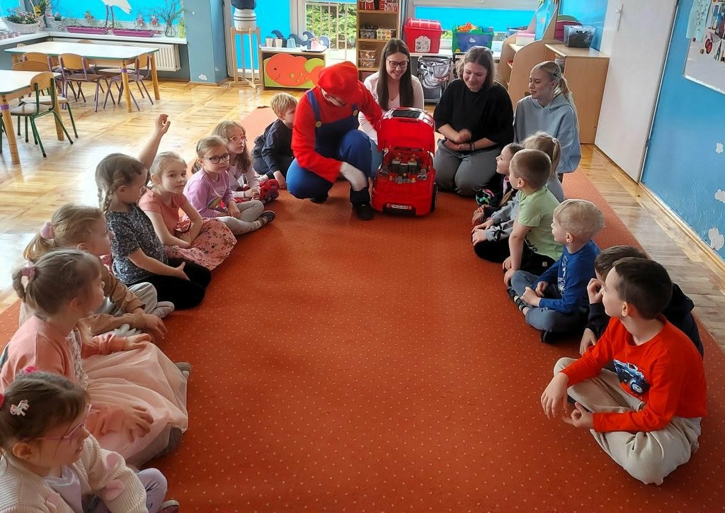 Uczniowie Zespołu Szkół Zawodowych nr 1 w Zduńskiej Woli odwiedzili grupę 5-latków z Publicznego Przedszkola nr 4, aby w ciekawy i przystępny sposób przybliżyć im, na czym polega praca mechanika samochodowego.