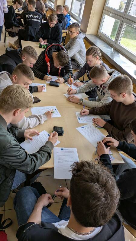 Już wkrótce wyjazd do Włoch na dwutygodniowe praktyki zawodowe, dlatego w świetlicy odbyło się spotkanie szkolnego koordynatora programu Erasmus+ z uczestnikami projektu nr 2025-1-PL01-KA121-VET000326285 w zawodach z branży logistycznej i samochodowej. Uczestnicy w ankietach podsumowali zajęcia przygotowujące ich do wyjazdu oraz otrzymali prezenty na podróż, które umilą im drogę do Włoch.