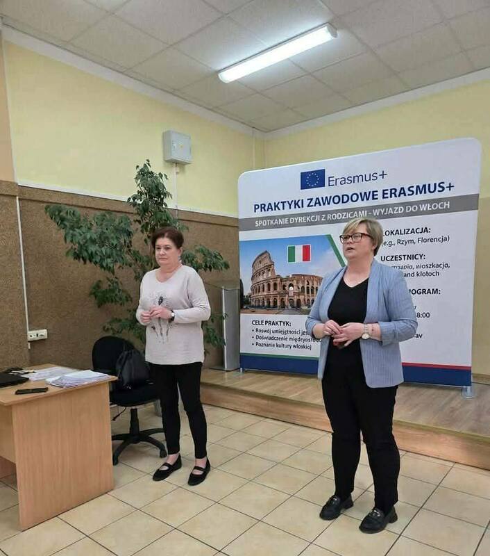 Spotkanie dyrektora szkoły i koordynatora programu Erasmus + z rodzicami uczestników projektu nr 2025-1-PL01-KA121-VET000326285 z branży logistycznej i samochodowej przed wyjazdem na dwutygodniowe praktyki zawodowe do Włoch.