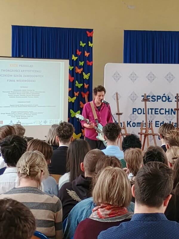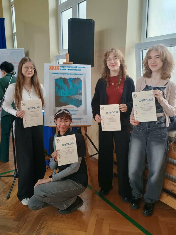 16 kwietnia uczennice z klasy 3 REM: Lena Kopa, Maja Kopa, Joanna Vincent i Ewa Stachurska wzięły udział w uroczystym podsumowaniu wojewódzkiego finału XXIX edycji Przeglądu Twórczości Artystycznej Uczniów Szkół Zawodowych. Uroczystość odbyła się w Zespole Szkół Politechnicznych w Łodzi. Nasze uczennice wzięły udział w konkursie, w kategorii twórczości plastycznej. Jury w składzie: Piotr Karczewski (Akademia Sztuk Pięknych w Łodzi), Piotr Mastalerz (Instytut Architektury Tekstyliów Politechniki Łódzkiej) oraz Karol Stolarek (Wydział Artystyczny Akademii Humanistyczno-Ekonomicznej w Łodzi), oceniło 51 prac plastycznych zgłoszonych do konkursu przez 48 uczestników. W czasie gali zgromadzeni mogli podziwiać nagrodzone i wyróżnione prace. Podczas gali dziewczęta wraz z zaproszonymi gośćmi oraz innymi uczestnikami konkursu wysłuchały również recitalu Pana Michała Gibkiego, muzyka i gitarzysty związanego z łódzką sceną muzyczną.